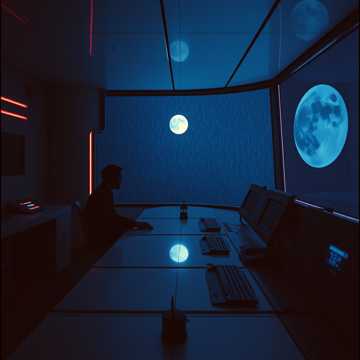 A dark, atmospheric electronic piece with a slow tempo and a minor key, The primary instruments are a synthesized pad, a deep bass synth, and a subtle, high-pitched arpeggiated synth, The pad provides a sustained, melancholic backdrop, while the bass synth lays down a simple, repetitive rhythmic foundation, The arpeggiated synth adds a shimmering, almost ethereal texture that floats above the other elements, There are no drums or percussion, contributing to the track's ambient and introspective feel, The overall production is clean and spacious, with a focus on sustained tones and subtle movement, The piece has a consistent mood throughout, without significant structural changes or dynamic shifts, The chord progression is simple and repetitive, emphasizing the minor key's somber quality, The piece is entirely instrumental