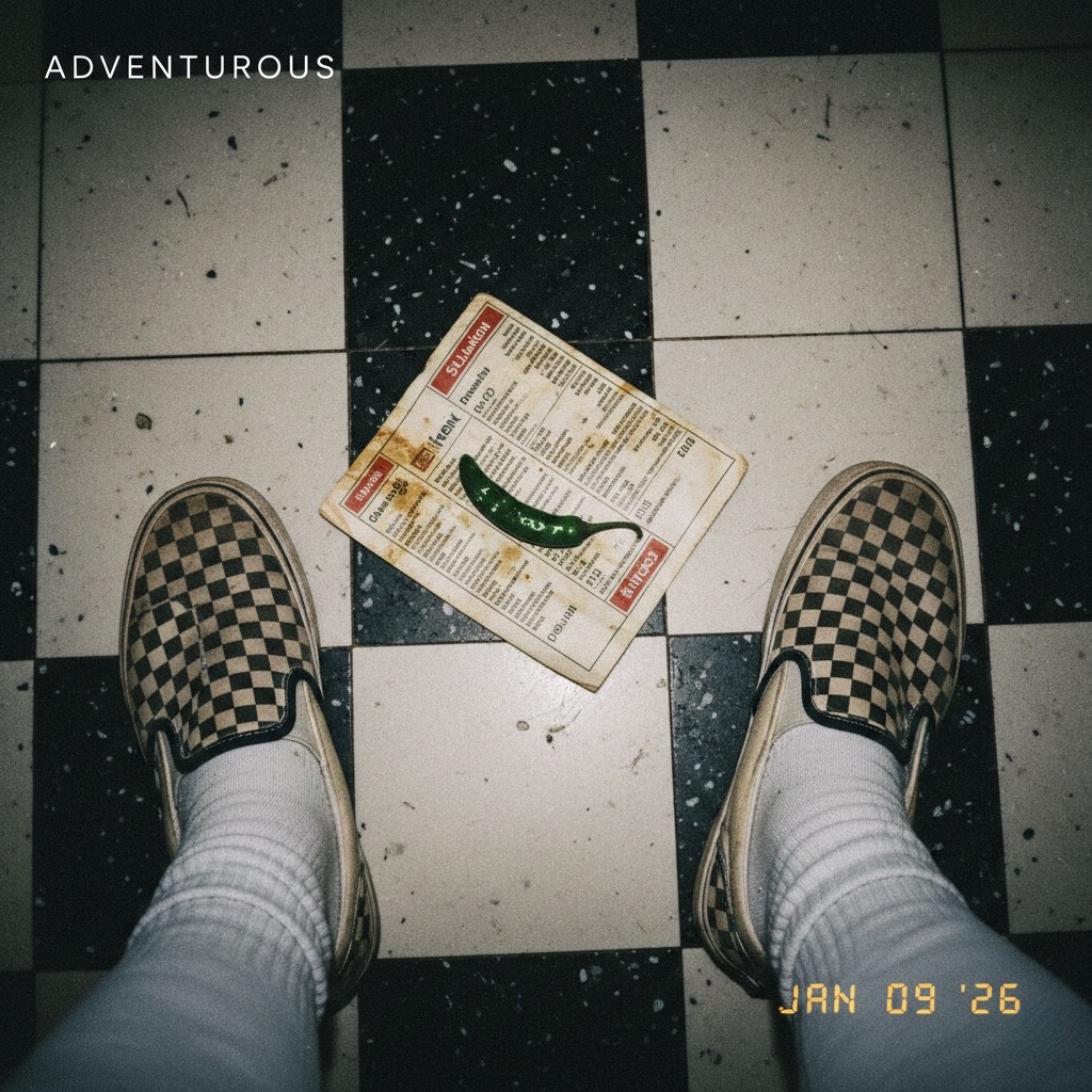 Sweaty, reckless garage-indie power pop with swagger: saturated two-chord guitars crunch and shimmer without losing clarity, overdriven bass prowls with a thick, rolling groove, Drums are raw, human, room-mic recordedโloose, punchy, alternating lazy syncopation with sudden double-kick bursts, A melodic, reedy woodwind-style lead snakes through the fuzz: smooth glides, frantic stabs, expressive and playful, Rhythm section fuses lo-fi chill textures with dense funk grooves, Subtle synth sparks, filtered sweeps, tremolo pulses, tape hiss, and feedback squeals color the mix, Vocals are intimate, dry, half-sung, deadpan with emotional cracks, Mix emphasizes clarity and separation, every edge intentional, energy chaotic yet controlled, mischievous, romantic, adrenaline-charged, alive