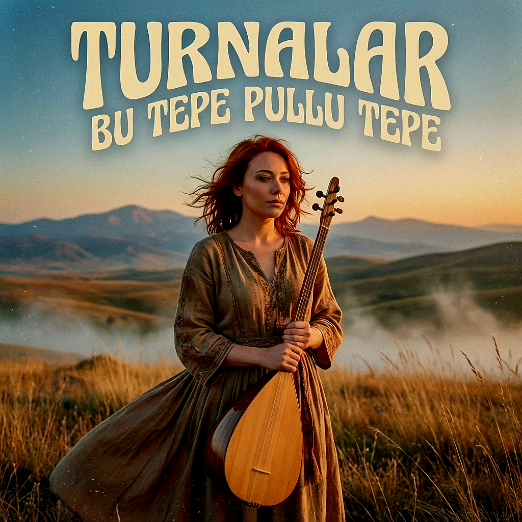 1970s Anatolian psychedelic rock, Erzurum folk melody fused with classic Turkish bağlama and fuzz electric guitar, wah accents, warm analog bass, live vintage drum kit with open hi-hat groove, Hammond organ swells, subtle analog synth pads, light bendir textures, Female lead vocal clean and powerful with Anatolian vibrato and emotional phrasing, folk call-and-response backing vocals, Plate reverb and light tape delay on vocals, Mid-tempo hypnotic groove, earthy village folk feeling blended with urban psychedelic rock energy, Vintage tape saturation, soft grain, wide but dirty stereo guitars, expressive bağlama solos, Emotional, nostalgic, cinematic Anatolian atmosphere, preserving original folk structure and lyrical integrity