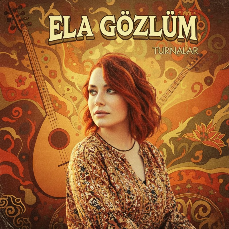 Create a 1970s Anatolian rock arrangement inspired by the traditional folk song “Ela Gözlüm, ” preserving its original tempo and rhythmic flow while reimagining it with a classic Anatolian rock sound, Build the track around bağlama carrying the main melody, supported by fuzz and lightly overdriven electric guitars with long sustain, analog bass lines, and loose, organic 1970s-style drums, Feature a strong and expressive female lead vocal with a clear, emotional tone reminiscent of powerful Turkish rock singers, delivering the lyrics with respect to the folk roots while adding dramatic depth, Allow extended instrumental sections with melodic improvisation, warm analog saturation, and a spacious psychedelic atmosphere, The overall sound should feel timeless, earthy, emotional, and deeply rooted in classic 70s Anatolian rock culture