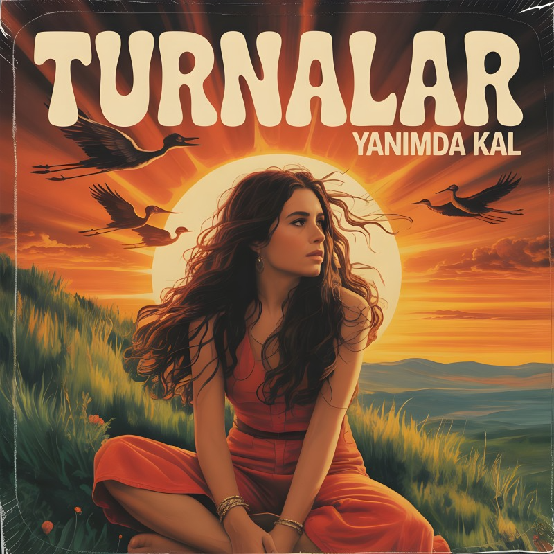 Create a 1970s-style Turkish psychedelic rock version of the song 'Yanımda Kal', Use warm, analog-sounding guitars with light fuzz distortion, melodic solos, and occasional wah pedal leads, Add groovy live bass and organic drums with roomy reverb, slightly laid-back feel, Include Hammond organ or vintage synth layers for psychedelic depth, Vocals are female, passionate but slightly raw, reminiscent of 70s Anatolian rock singers, with subtle chorus backing vocals in the chorus for a hypnotic vibe, Tempo is moderate and groovy, arrangement should have long instrumental sections, especially a guitar solo outro that fades out gradually, Overall feel: warm, nostalgic, psychedelic yet emotional