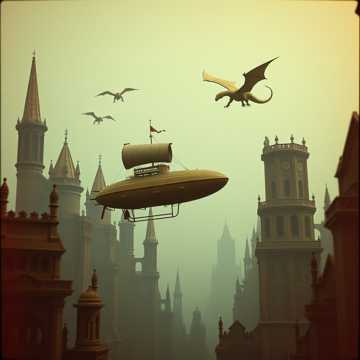 orchestral, rhythmic, steampunk, evokes exploration through floating airships, rhythmic clockwork percussion, deep bass, mechanical textures, and mysterious synth pads, deep, and mechanical dragons, emotional and heroic atmosphere with a hint of melancholy, industrial, forgotten ruins, electronic, cinematic dark-electronic adventure score blending industrial pulse with orchestral and steampunk elements, melancholy, emotional