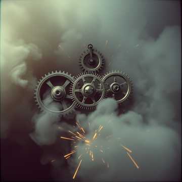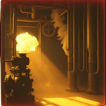 dark industrial ambient, deep mechanical hums, ambient, metallic clanks, electronic, industrial, steam hiss fx, deep, metal, beats, warm analog synth layers, slow, cinematic steampunk atmosphere, warm, introspective yet alive with invention, steampunk