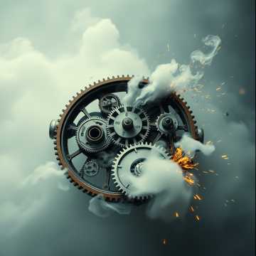 fast-paced dark industrial fantasy battle track at 152 BPM with alternating bursts of speed and slow-motion sections, creating the sensation of time warping in combat, distorted mechanical bass, molten-metal synths, magnetic pulse drums, and glitch-fire effects, cinematic steampunk energy fused with medieval tension – every beat feels like a weapon discharge, sudden breaks, syncopated interruptions, and decelerated moments mimic the engineer’s tactical dodges before reigniting into chaotic overdrive, evokes the molten heart of a living machine inside the world of gears, flame, and fury