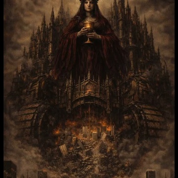 dark symphonic, sacred choral, liturgical, hymnal, pure alto lead, melismatic choir, precise diction, measured tempo, orchestral, bells, bass, cathedral drums, Byzantine, plainchant influence, 3rds and 5ths, dramatic theatrical, cinematic, ‑operatic vibrato, ‑vocal fry, ‑nasal tone, ‑pop production, ‑electric guitar, ‑synthesizer, ‑upbeat tempo, ‑percussion heavy, ‑jazz influence, ‑folk, ‑casual delivery, ‑breathy vocals