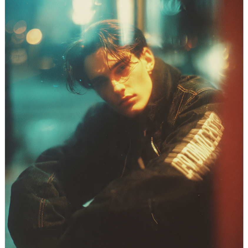 City pop, Tokyo night vibes, jazzy, [VOCALS: male vocal, breathy and close-miked, slightly saturated, soft harmony, ambient reverb trails], Create a dreamy fusion of jazz, city pop, spacey synths, and bossa nova rhythms, Imagine a neon-lit city at midnight, slow dancing with the stars, Blend warm nylon guitar, mellow sax, retro-futuristic keys, and lo-fi textures, Let it feel nostalgic yet cosmic, like falling in love while drifting through an interstellar Tokyo night, ”