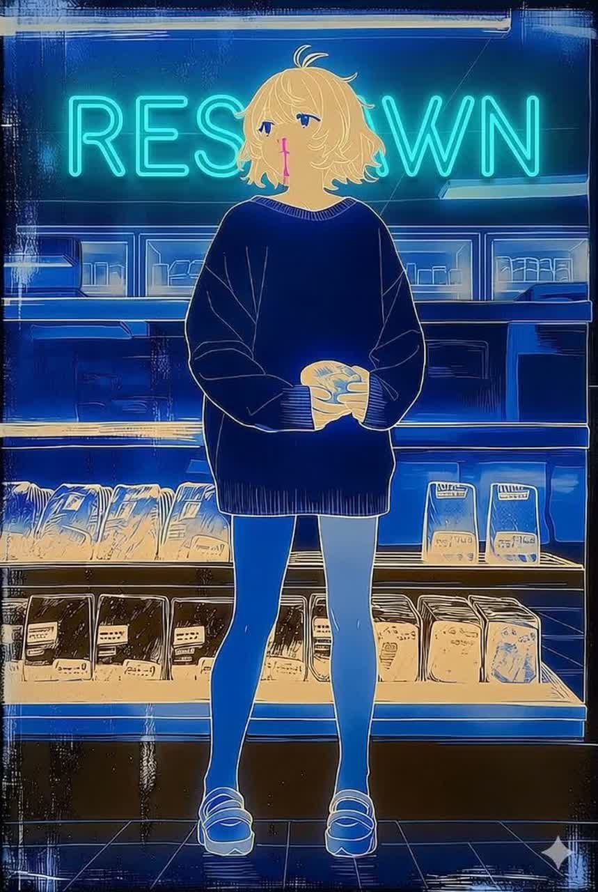 [Theme: Frozen time • digital defiance • neon sorrow • revolution • self-destruction]