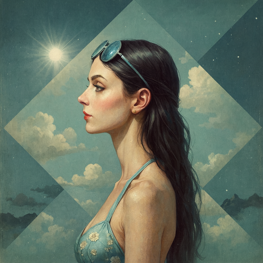 Cinematic Art Pop and Ambient Dream Rock merge as arpeggiated 12-string guitars and Rhodes piano build a luminous, looping foundation, Analog synths and faint Mellotron strings wash beneath, while gentle, jazz-tinged percussion—mainly soft toms—glides under airy vocals blending sung and spoken elements, Reverse effects and faint ambient soundscapes amplify the surreal, vintage art rock aura, The arrangement blooms gradually, textures blurring and fading until the mix dissolves into a lingering, suspended sonic afterglow
