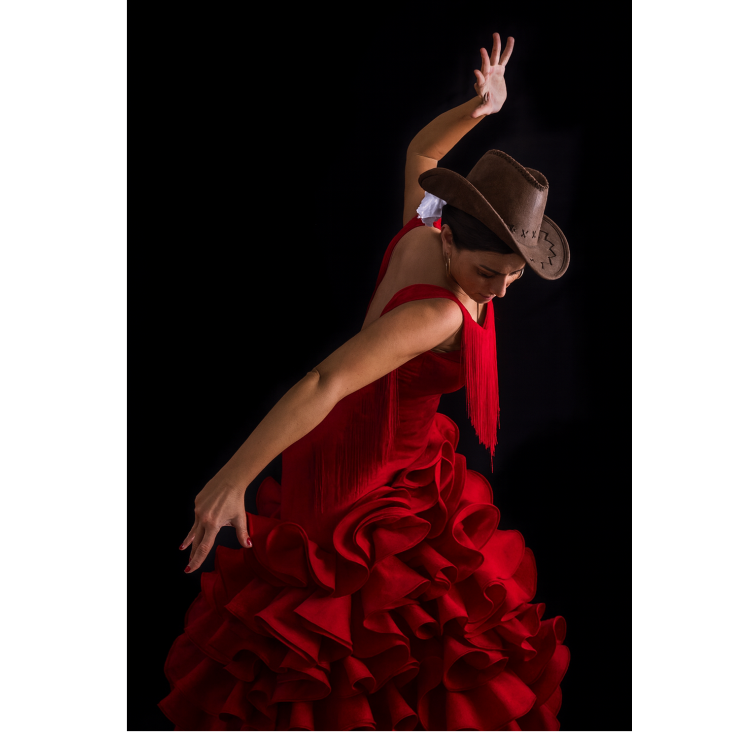 dynamic and energetic track that fuses the rhythmic intensity of reggaeton with the passionate flair of flamenco guitar and handclaps, Layer this with the gritty, atmospheric beats and hi-hat rolls characteristic of trap music, adding deep basslines that drive the rhythm forward, Infuse the track with the high-energy synths, build-ups, and drops typical of EDM, creating a powerful dancefloor vibe, The fusion should feel seamless yet bold, balancing the organic and acoustic textures of flamenco with the electronic pulse of trap and EDM, Include dynamic shifts that highlight flamencoโs emotional expressiveness alongside the steady reggaeton groove, while trap elements add tension and EDM elements bring euphoric release, The overall mood should be vibrant, edgy, and perfect for both club settings and festival stages