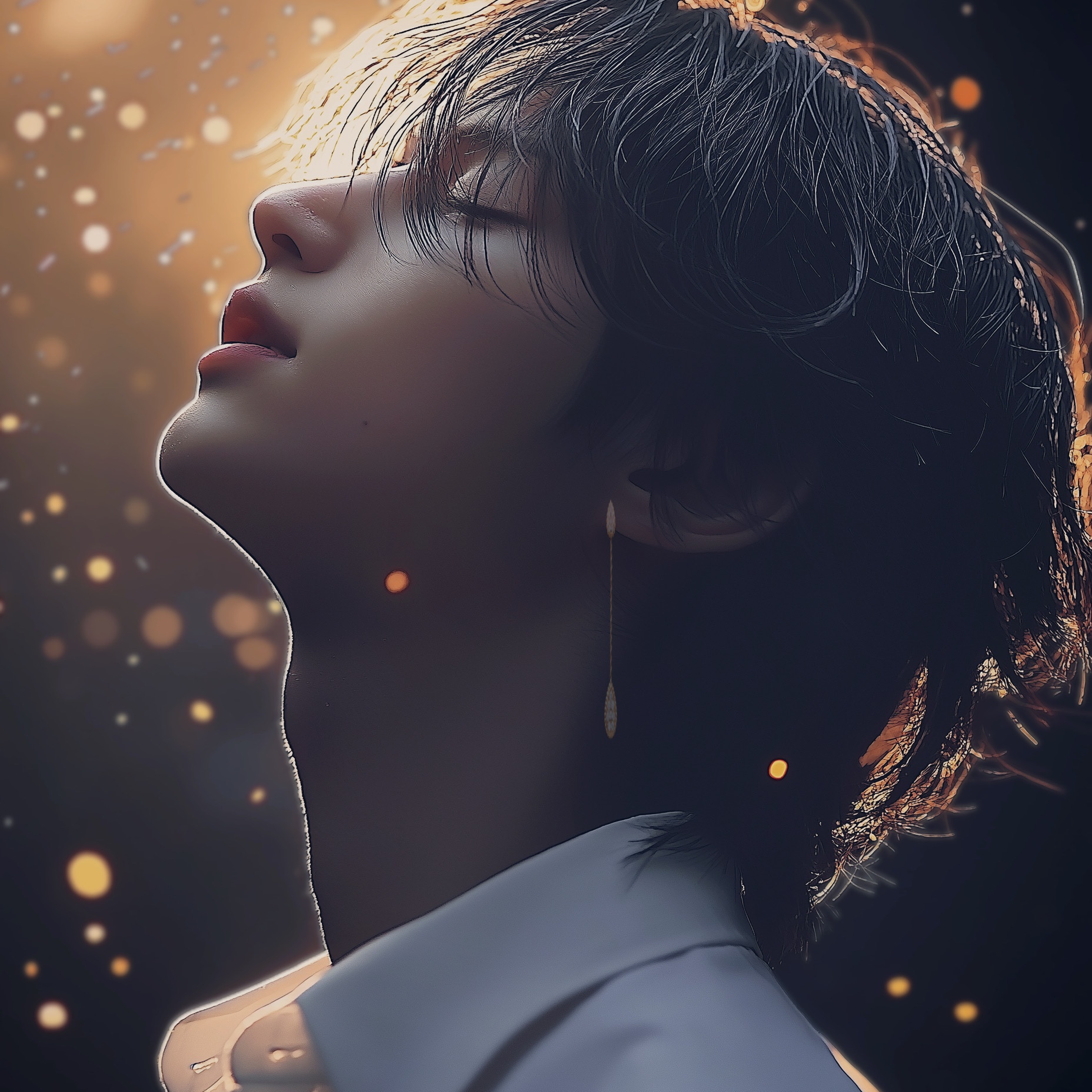 Catchy male vocals blend with atmospheric guitar riffs, ethereal synth pads, reverb-soaked whispers, pulsing beats, and flickering light fragments, creating a mesmerizing and immersive soundscape