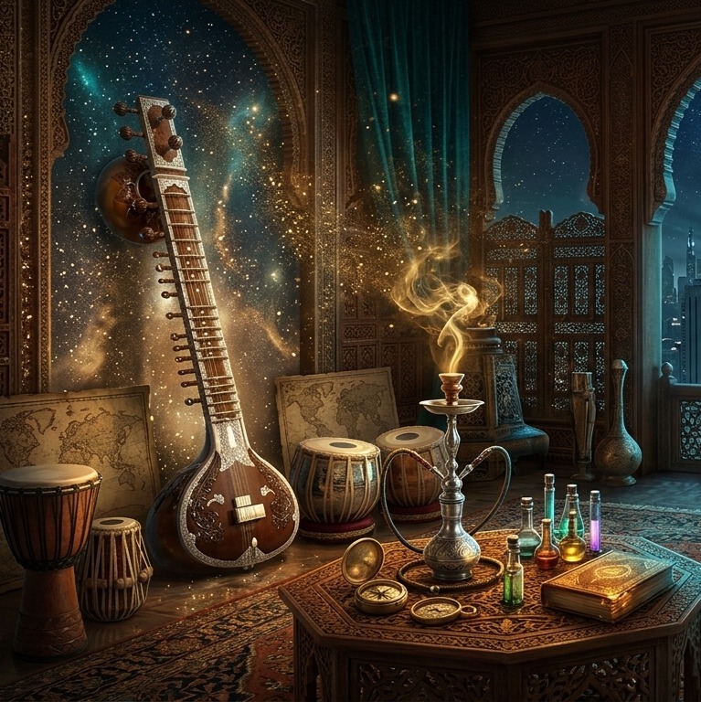 [Downtempo:TripHop:DesertLounge:95BPM], [E-PhrygianDominant], [DominantAncientEgyptianHarp:50], [SmokyLoungeAtmosphere], [DeepWarmDubBassline], [WhisperedVocals:0, 9], [BreathlessSpokenWord], [GhostlyAtmosphere], [NoChoir], [NoBelting], [MinimalistDynamics], [FadedBackgroundVocals], [Mastering:-12LUFS]