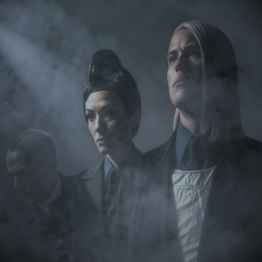 war drums, This dark electro and gothic chill track flows over 85–95 BPM with a heavy synth bass, cold ambient pads, and minimal, crisp beats, Layers of ritualistic, ethereal atmospheres and shadowy synth textures create cinematic darkness, Soft, mysterious female vocals float with reverb and airy echo harmonies, The song simmers with melancholic tension, gradually layering elements for a slow-burning emotional progression that holds a moderate pop influence