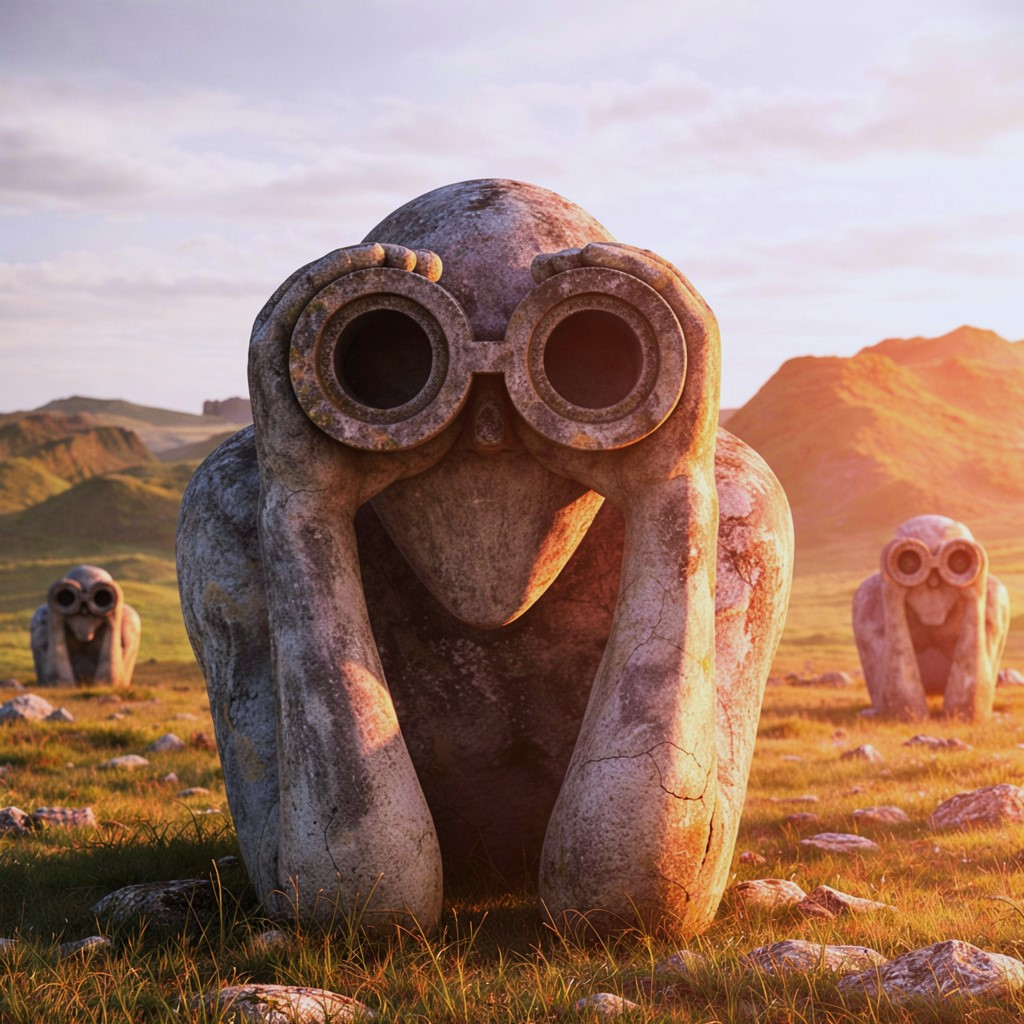 This dystopic new folk/art pop piece opens with bright acoustic guitar, soon intertwined with metallic, airy pads and fractured glitch beats, Irregular, evolving loops lend unpredictability as sparse textures highlight alienation, Filtered, whispered female vocals—pitch-shifted and soaked in infinite reverb—repeat haunting fragments, while a low, spoken male voice, drenched in reverb and ping-pong delay, glitched, and mid-word chopped, snakes through the mix, Abstract, nonlinear vocal elements drift above the sparse, eerie arrangement, The outro either abruptly cuts or dissolves into a ceaseless loop, sustaining the ethereal and disorienting atmosphere