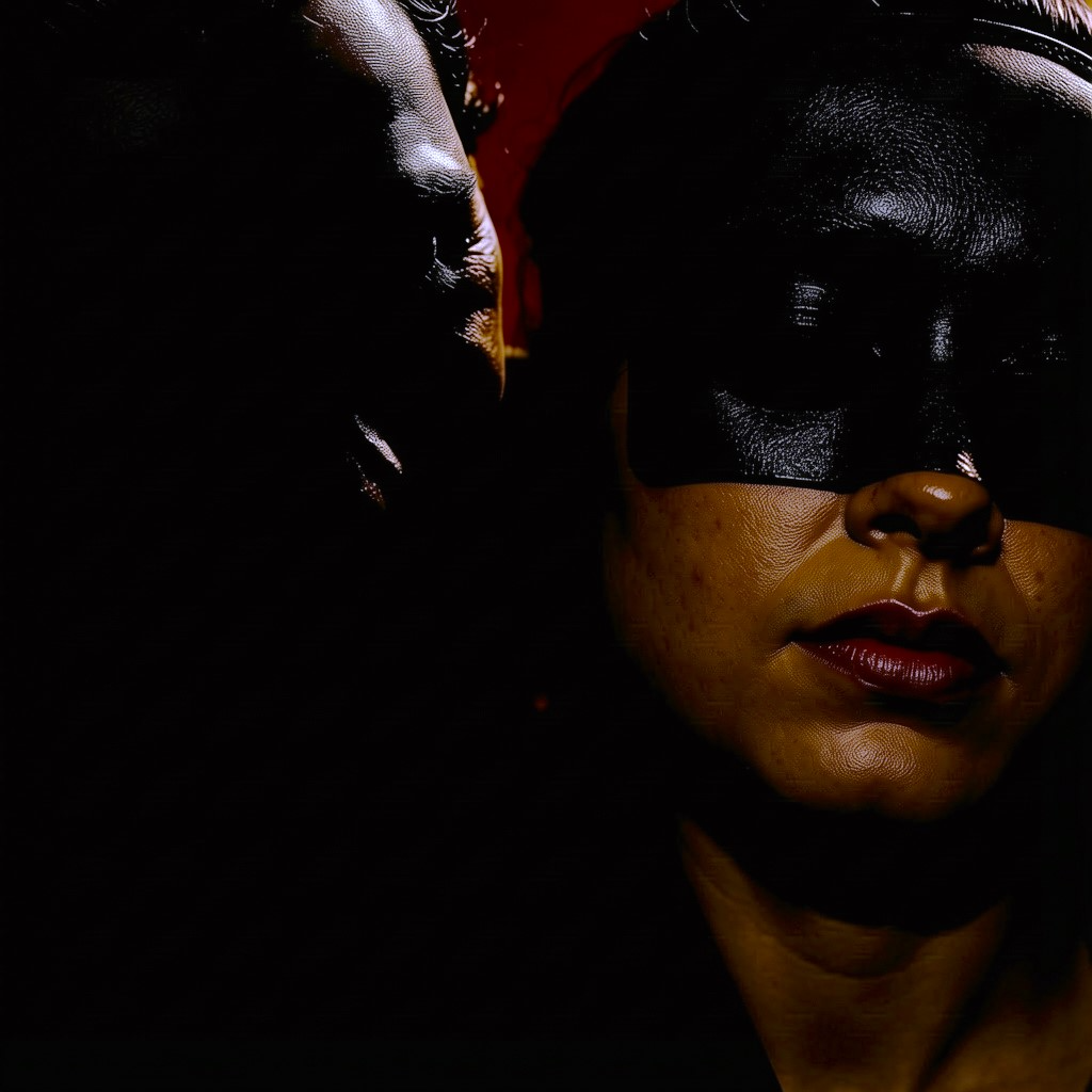 A slow, sensual groove emerges with deep wardrum rhythms and hypnotic bass synth pads, Spanish guitar riffs weave through tribal percussion, while pan flutes add an exotic texture, Dark, raspy baritone vocals playfully breathe over erotic echoes and distant, moaning harmonies, blending alternative rock edge with sultry soul