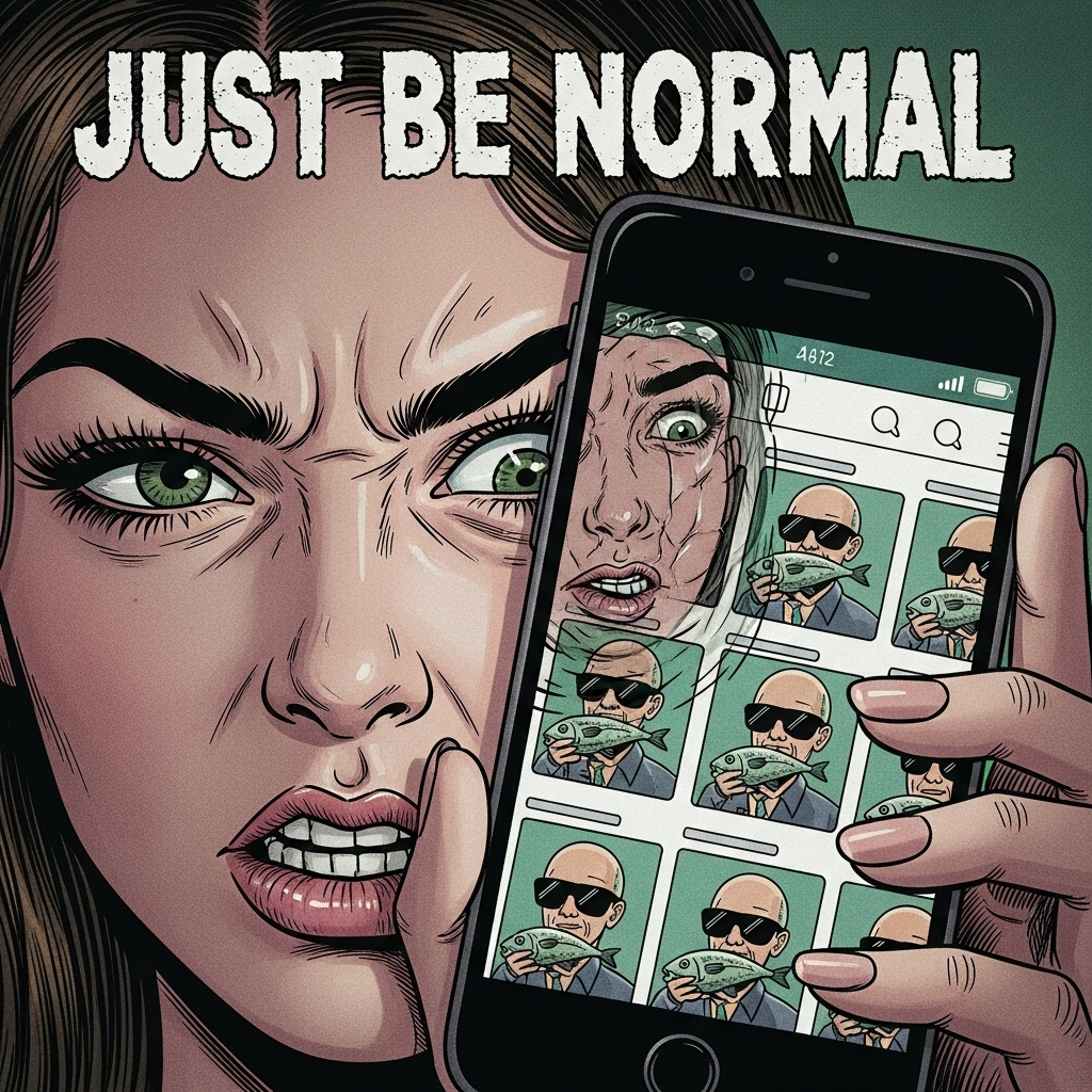 A raw, lo-fi post-punk track in the style of early 2000s garage rock revival, [style: garage rock, no wave] [vibe: cynical, sarcastic], Features a driving, repetitive bassline, minimalist drums, and a noisy, slightly out-of-tune electric guitar that cuts in and out, Vocals are a sarcastic, deadpan spoken-word rant, [vocal-style: spoken, shouted, rant] [mood: sarcastic]