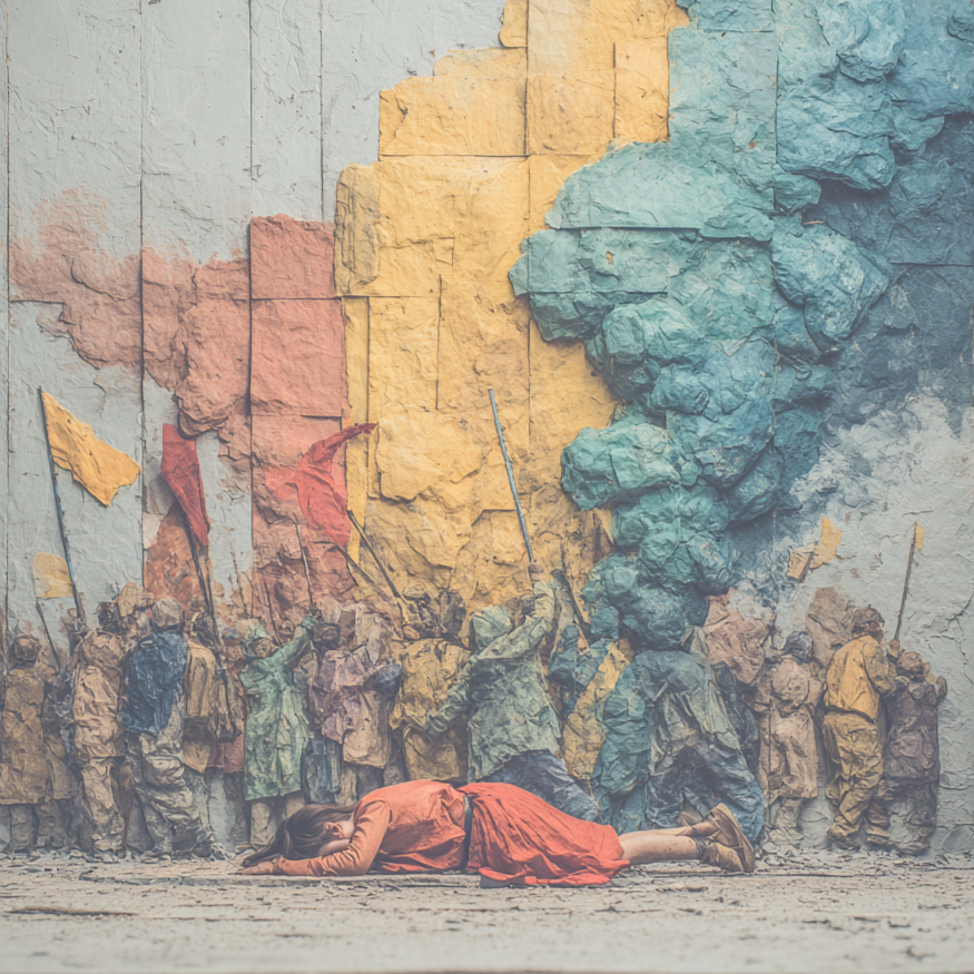 leading guitar, backing big-band horns, blend genres, marching drum, rhythmic math-rock, melodic progressive-rock, dramatic post-rock