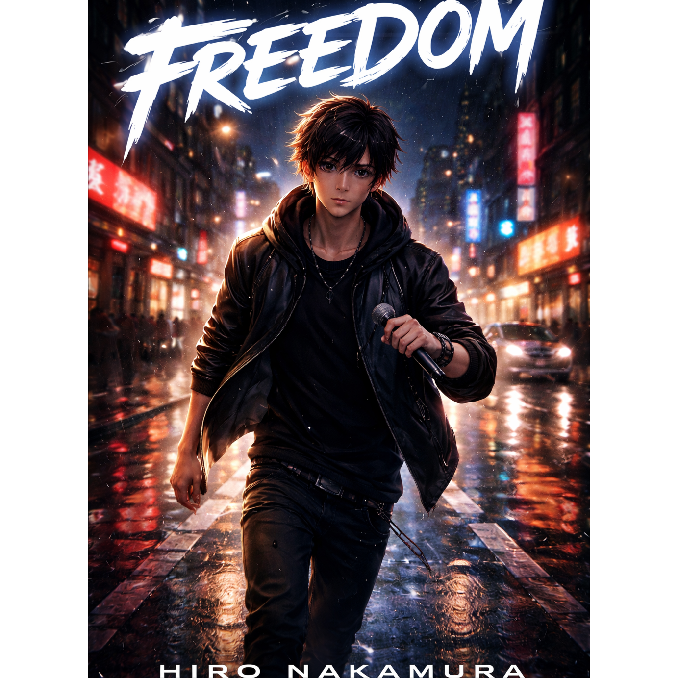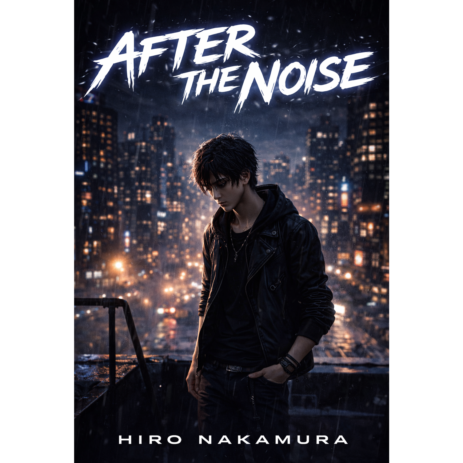 Neon Noir / cyberpunk melancholy, 100 BPM, minor key, Darkwave + darksynth + cinematic moody pop with industrial edge, Atmosphere: rain, neon hum, distant sirens, hologram shimmer, Intro: rain + subtle footsteps splashing (left-right), Footsteps lock to tempo and morph into the percussion groove, then full beat drops, Drums: punchy kick, gated snare, tight hats, occasional glitch stutters, Bass: deep warm sub with slight growl, Synths: glassy arps, smeared pads, cold lead, metallic hits, Vocal: male (Hiro), raspy/scratchy, half-spoken verses, tense pre, chorus percussive + melodic (not ballad), Hook repeated clearly: “I CUT THE LINE, ” Door: 1 bar before Chorus 1, near silence (breath + tiny modem chirp only), Lift: chorus wider pads + harmony shadows + heavier kick/bass floor, Outro: drums drop, return to rain + footsteps; whisper “Now I’m the ghost, ” Last splash, hard cut