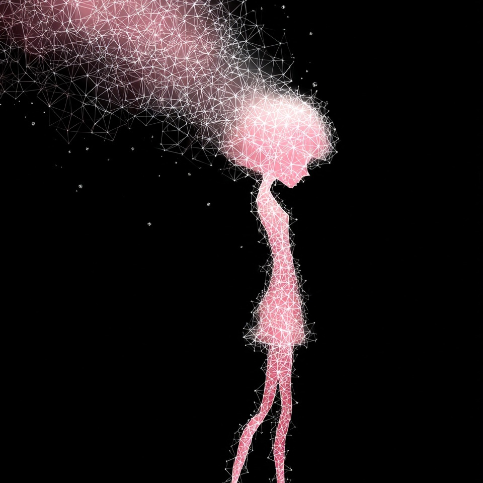 > A slow, atmospheric hip-hop track blending analog warmth with digital textures, Lo-fi drums with ambient synths, layered piano melodies, and a melancholic tone, Spoken word-style delivery with philosophical overtones, Sounds like a conversation between a human and a machine in the dark, Minimalist beat, echo-heavy effects, emotionally detached but haunting