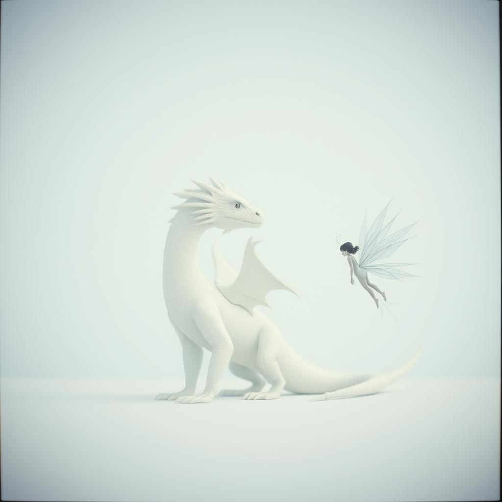 A fantastical lullaby about a lonely ice dragon and a fairy, Featuring a childlike, charming female vocalist, beautiful singing voice, Japanese style, rich emotion and dreaminess, bittersweet, pure, and mysterious, Soft piano and violin blend into dark electro, the tempo is fast, changing with the lyrics, creating an icy atmosphere, As the dragon and fairy sing together, the fairytale atmosphere transforms into one of hope, Fairies, dragons, ice, loneliness, and the miracle of meeting, An addictive tempo and melody, with a moving ending, Ballad, ‑Male vocal, ‑Slow tempo