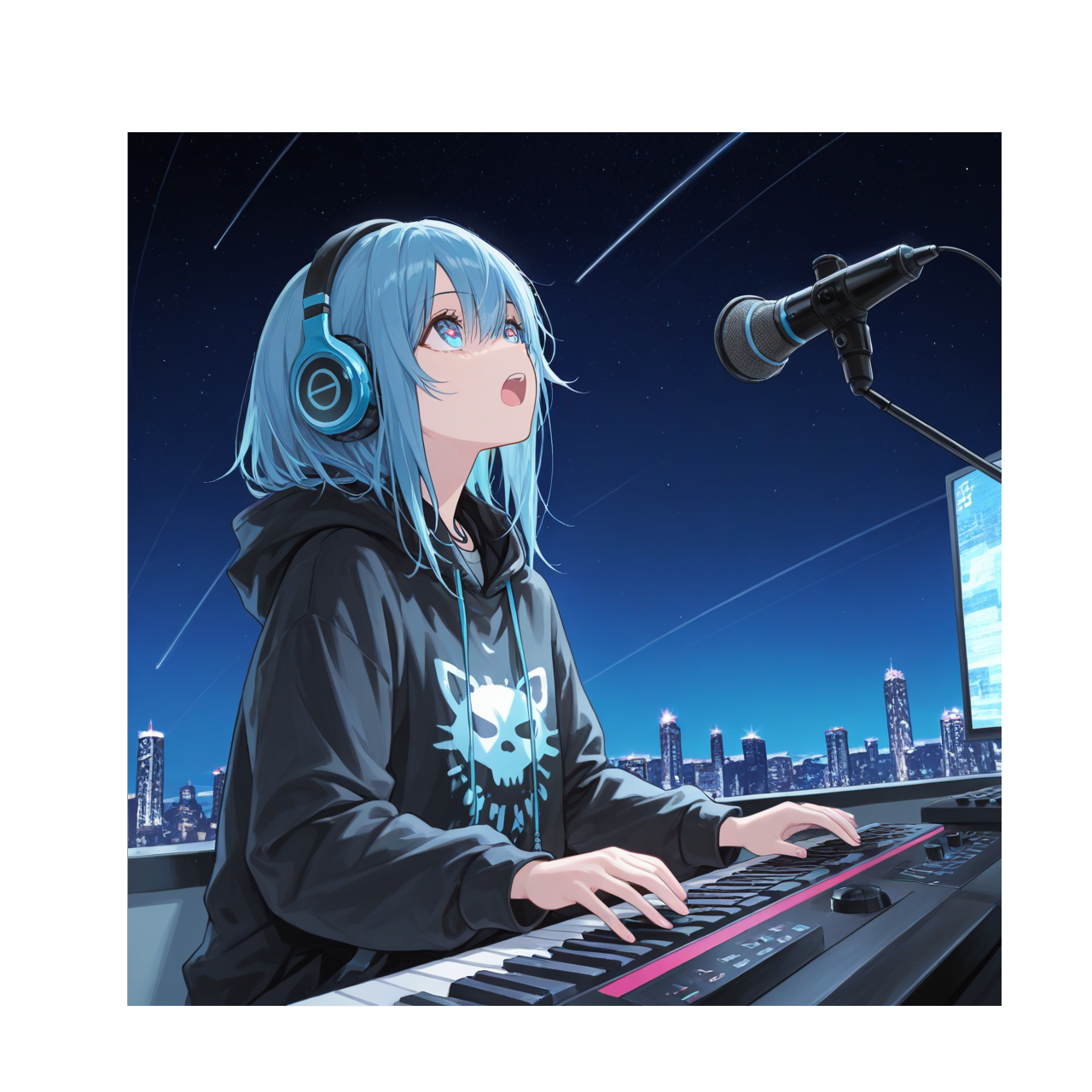 Futuristic Emotional EDM with Vocaloid, Atmospheric intro with airy pads and glitchy vox → Euphoric melodic build-up with pluck arpeggios → Explosive festival drop with sidechain supersaw and punchy kick → Uplifting chorus with soaring vocal lead, Blend of Future Bass, Progressive House, and Trance elements, Use wide stereo synths, sparkling high-end, and deep sub-bass, Vocal should be sweet, emotional, and slightly robotic (Vocaloid timbre), singing in Japanese with catchy English hooks, Include vocal chops and glitch effects, emphasizing "Glow, neon heartbeat" hook, Bridge with emotional piano + reverb → Final chorus with key modulation, maximal energy → Outro with fading pads and starlike synths, Cinematic, powerful, emotional, designed for festival mainstage and future club anthems, ‑male vocal