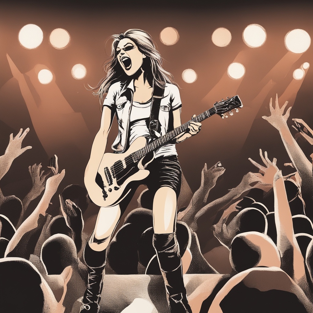 Airy female vocals, heavy rock n' roll, intense rock, heavy rhythmic guitar riffs