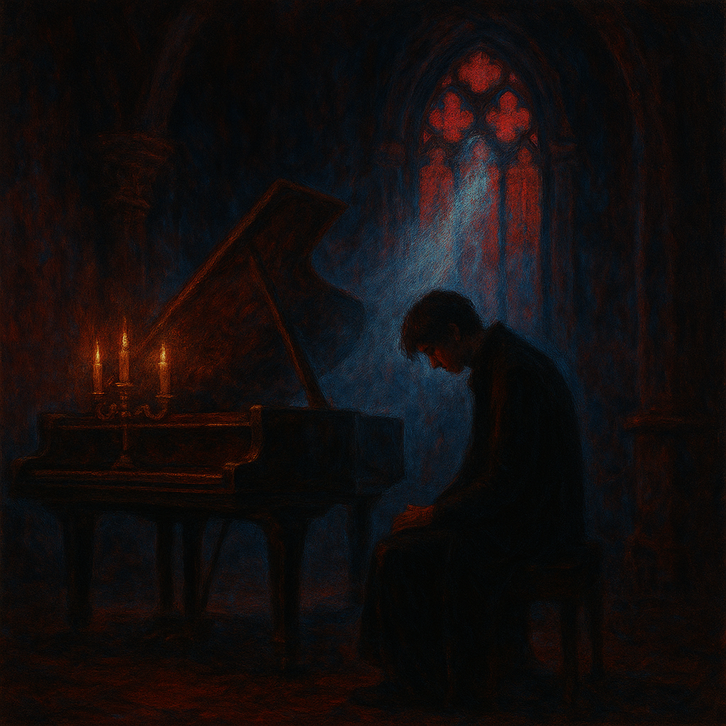 90s Japanese visual kei rock ballad, begins with delicate acoustic piano arpeggios and ethereal string arrangement in intimate quiet atmosphere, sudden explosive entrance of heavy distorted power chord with dramatic cymbal crash transitioning to full band, emotional male vocals with androgynous high range and breathy delivery, melodic twin guitar leads with chorus effect, driving bass lines with melodic counterpoint, dynamic drumming alternating between gentle brush work and powerful rock beats, lush orchestral strings throughout, dramatic quiet-loud-quiet dynamics with cinematic build-ups, melancholic yet epic atmosphere, theatrical gothic romantic production, breakdown sections returning to piano and strings before final explosive climax