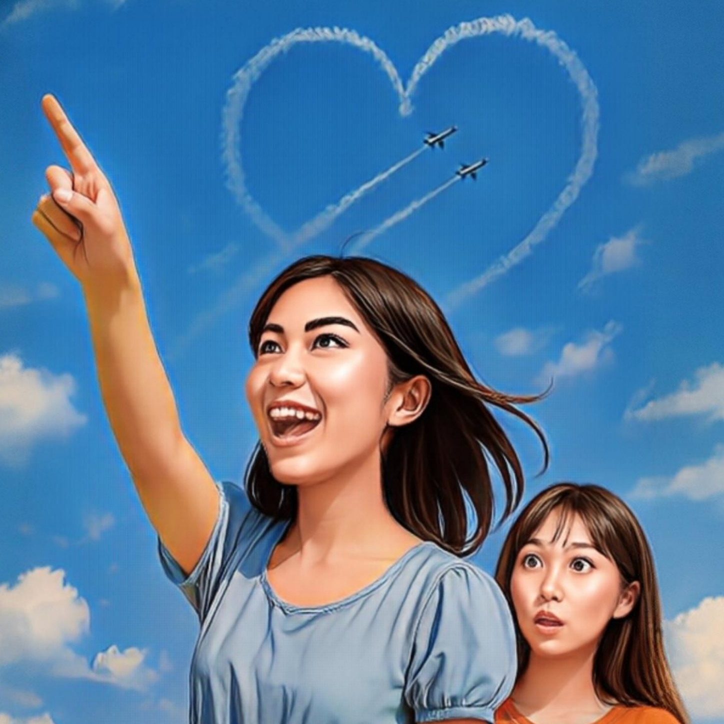 Lyrics theme: A whimsical daydream of a young woman watching Blue Impulse jets, imagining sky adventures and feeling love-like thrills
