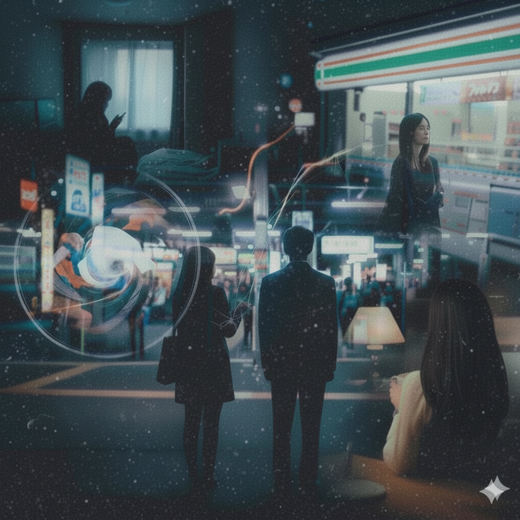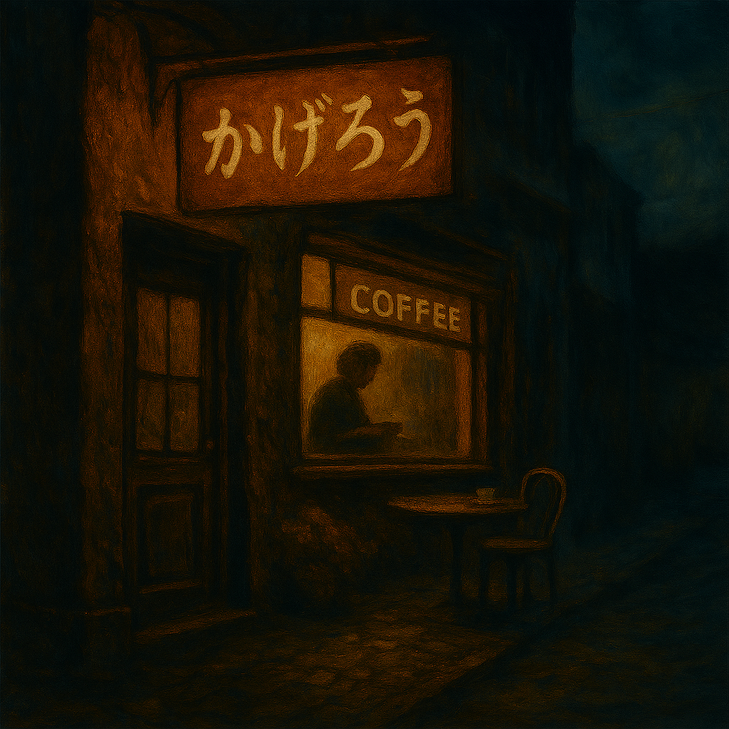 Mood: A quiet afternoon in a Japanese shopping street, warm oil scent, subtle joy in repetition, emotional warmth in everyday life