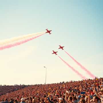 Lyrics theme: A dramatic aerial display by the Blue Impulse jets, seen through the eyes of a hopeful crowd