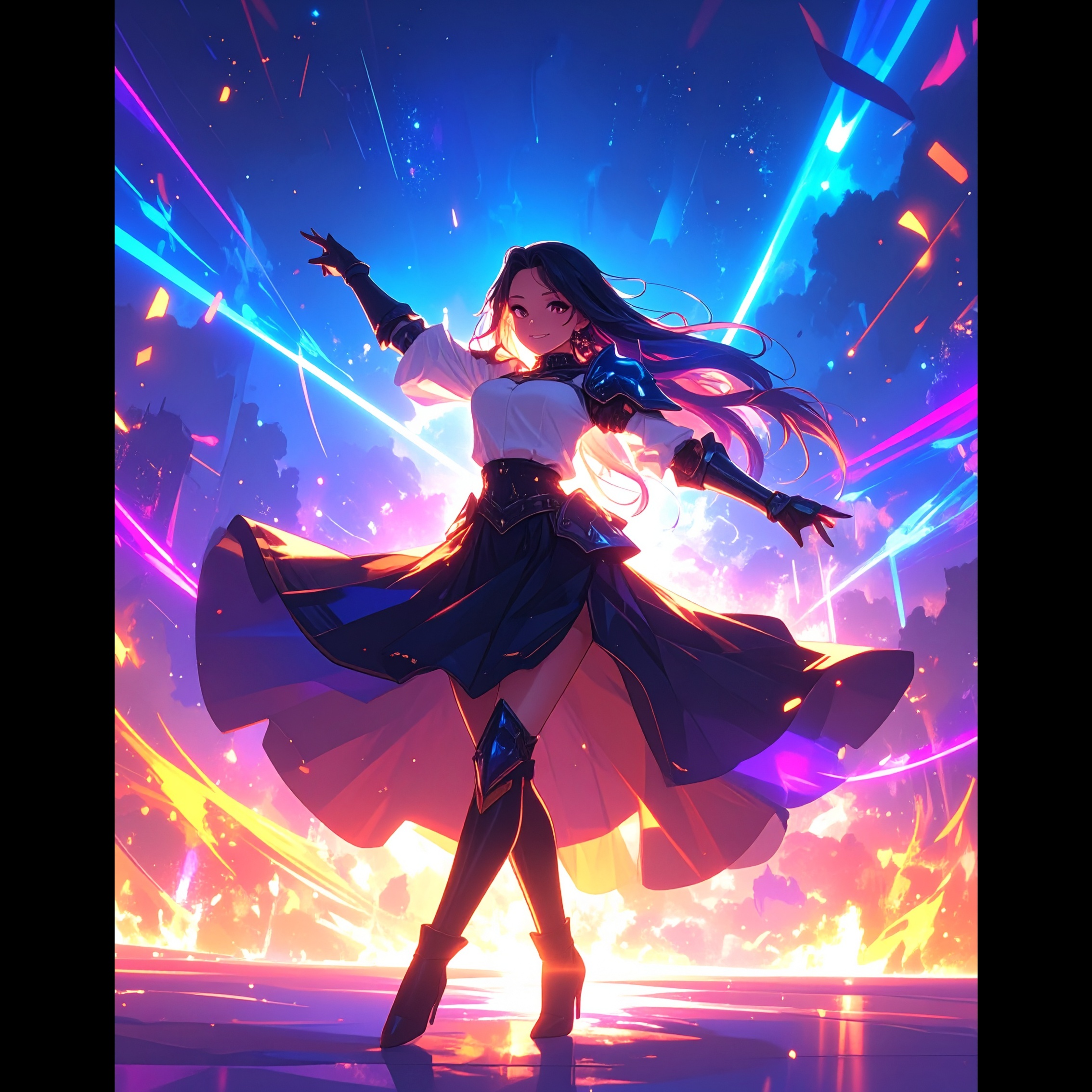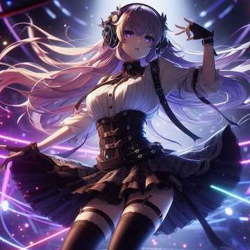 hyperpop remix with glitchy synths, djent, groovy bass, math rock, vintage synthesizer, shogaze, shred guitar solo, progressive, female vocal, maximalist mix, club-ready bounce, digital overload with a futuristic twist, ‑J-pop