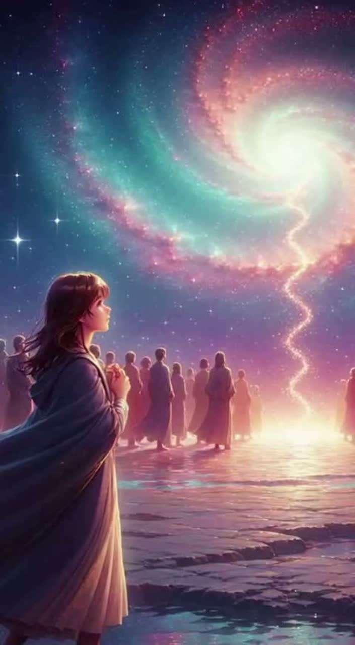 A nameless star begins its journey across the sky, carrying a forgotten prayer, It listens to the wind, touches dreams, and collects fragments of memory, Each step draws a constellationâa map of longing and light, This is the second chapter of the trilogy âæã®èšæ¶â â a luminous search for meaning