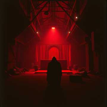 Verses: skeletal, reverb-drenched guitar arpeggios over driving tribal tom-toms and sparse post-punk bass, Cavernous space, angular guitar stabs, minimal percussion, Female vocals cold and detached—deadpan intensity or haunting spoken-word, Chorus detonates: thunderous tribal drums (floor toms, frame drums) in ritualistic patterns, menacing bass surges, guitars explode into dissonant chaos, Vocals shift to raw wails or hypnotic chant-like repetitions, Gated reverb snaps drums; delay shadows vocals, Transitions strip to bass and breath—unprocessed vocal fragments, industrial clang, scraped metal, footsteps, Abandoned factories, flickering streetlights, ritual and ruin, Visceral, body-driven darkness, ‑background noise, ‑glitches