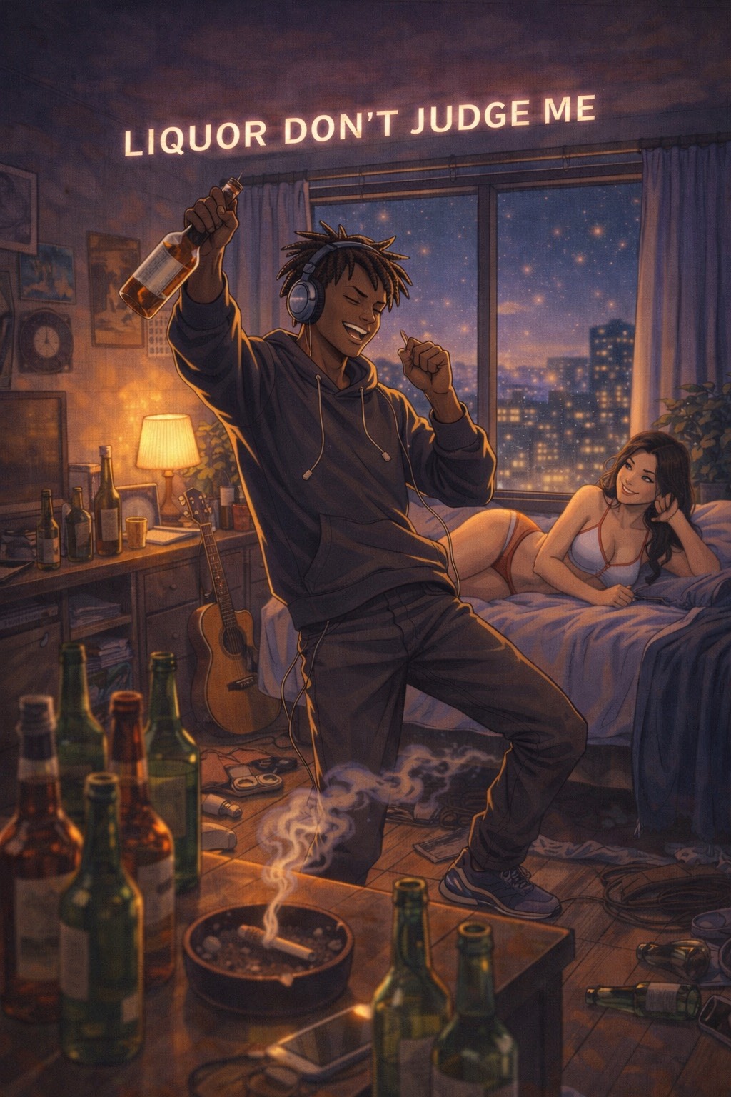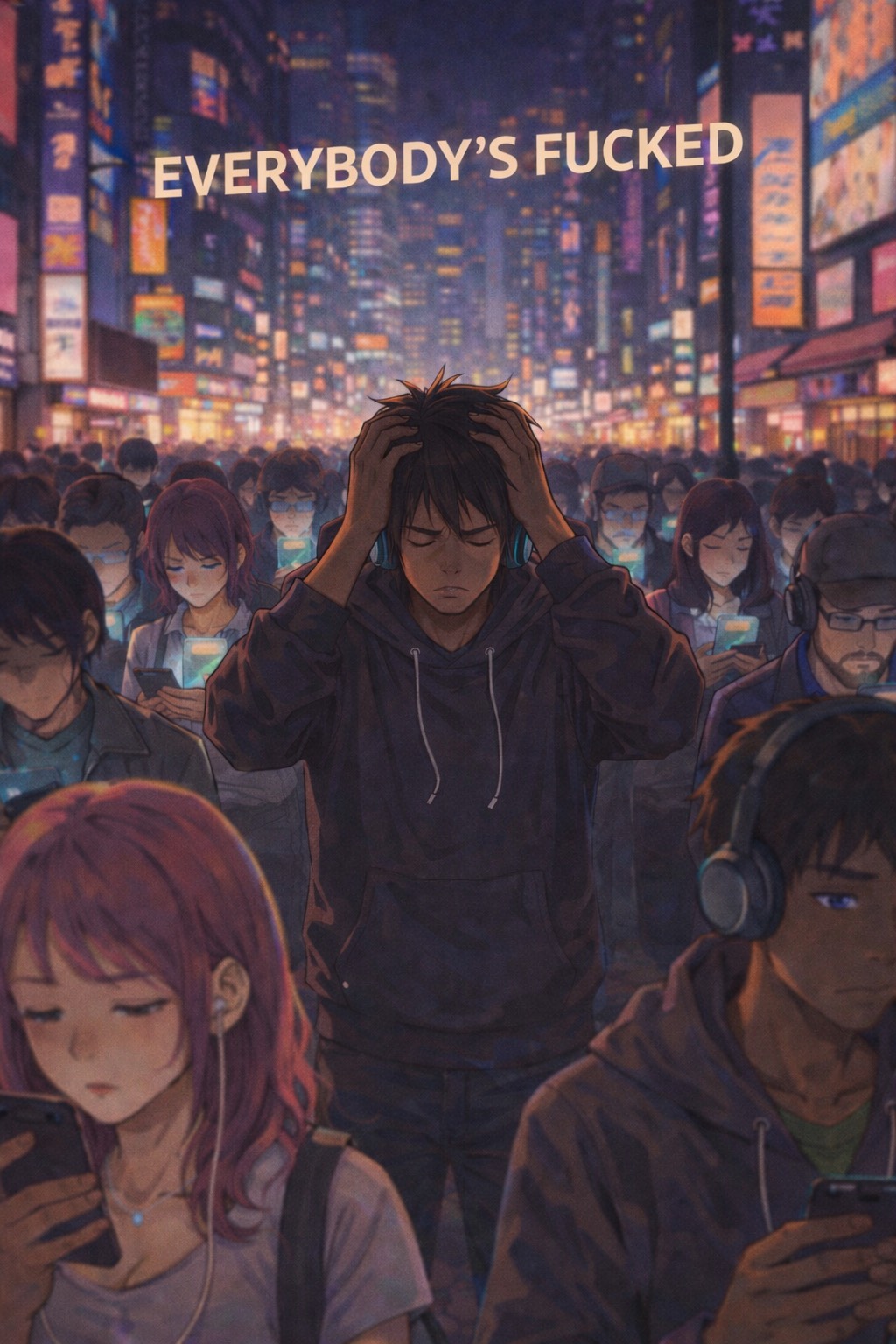 Alternative Hip Hop, lo-fi, quirky dark tone, satirical, electric bass, electric guitar, spoken word rap, melodic hook, 92 bpm, 808s beat, off beat, vinyl, electric piano, female voice, groovy