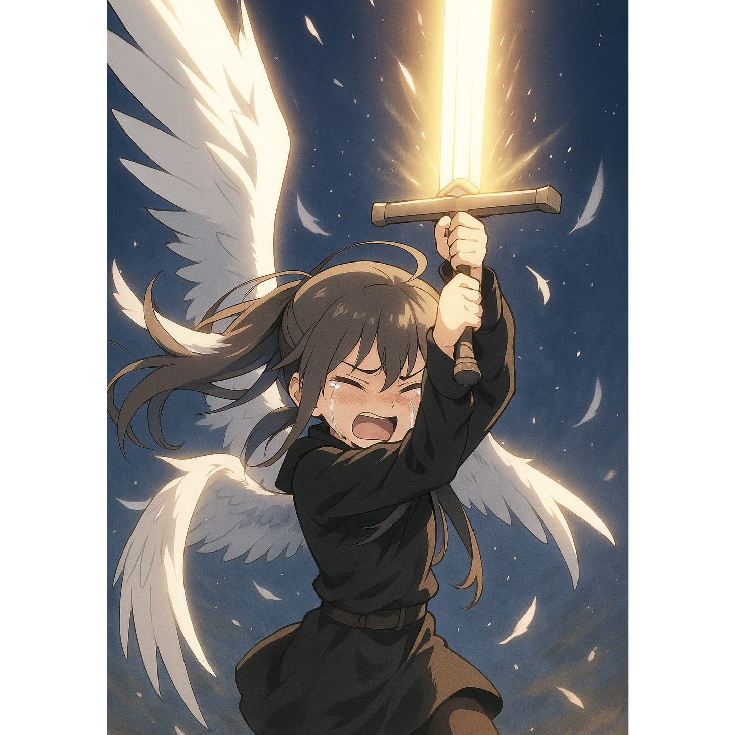 rio Core, female vocal, emotional, dark dramatic rock, fast tempo, intense strings, deep percussion, subtle choir for atmosphere, haunting piano, Vocals: female, high-pitched young girl, clear and cute voice with breaking emotion, dramatic build-up, cinematic tension, post-rock influences