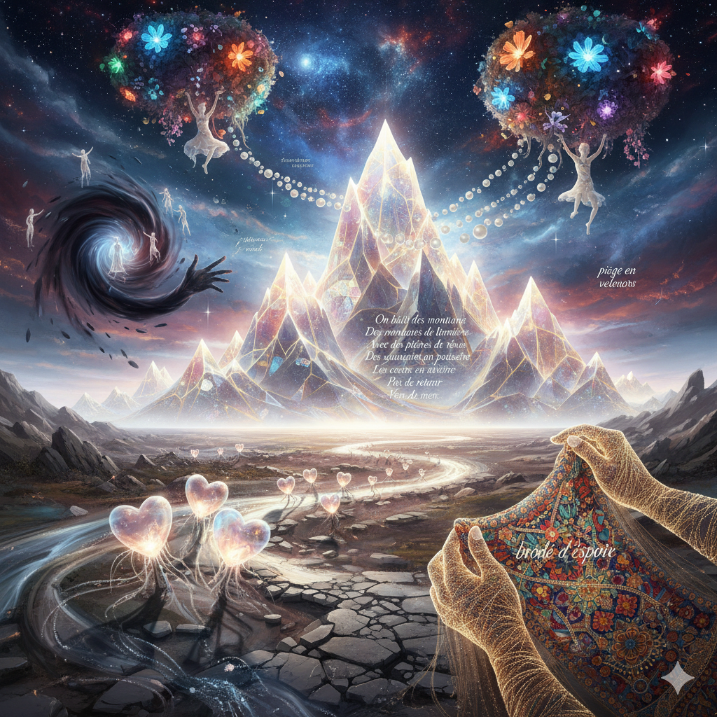 "style": "Emotional French folk-rock crescendo, female mezzo vocalist", "instrumentation": "acoustic guitar, piano, cello, violin, clarinet, brushed percussion", "dynamics": "intimate to explosive cathartic", "vocal": "breathy whisper (verses) to raw powerful belt (chorus)", "tempo": "75bpm intro → 85bpm pre-chorus → 110bpm chorus → 70bpm bridge → 115bpm finale", "progression": "solo piano start, gradual orchestral build, sparse bridge, full choir finale", "language": "French", "atmosphere": "Provençal, nostalgic, liberating"