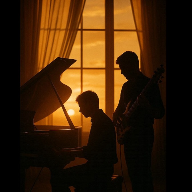 Notes: Key changes possible, Vocals: Native English male vocalist, Tenor male vocalist, Calm, gentle and refreshing male vocalist, A song featuring electric bass using a variety of techniques, Piano and bass duo, intimate arrangement, verse-chorus structure, piano and electric bass alternate leads, electric bass plays the main melody in the pre-chorus, melodic bass featured, walking bass jazz style, slap bass solo interlude, 110 BPM, key: F major, D major, or G major, warm, conversational tone, bright and serene atmosphere, Style: Fusion duo, piano and electric bass duo