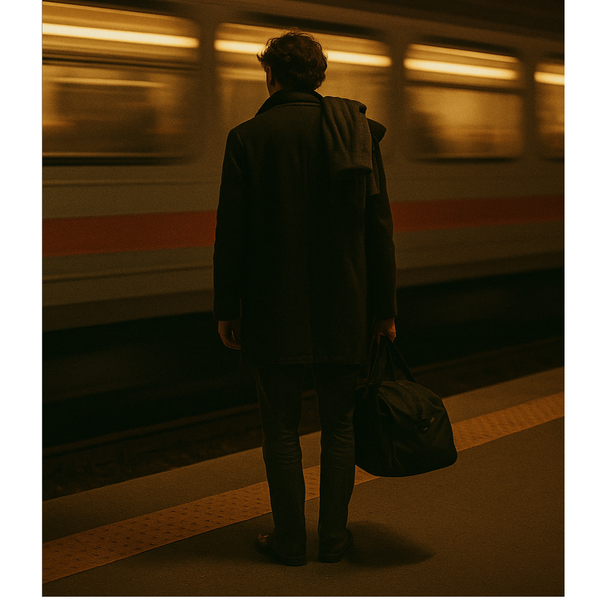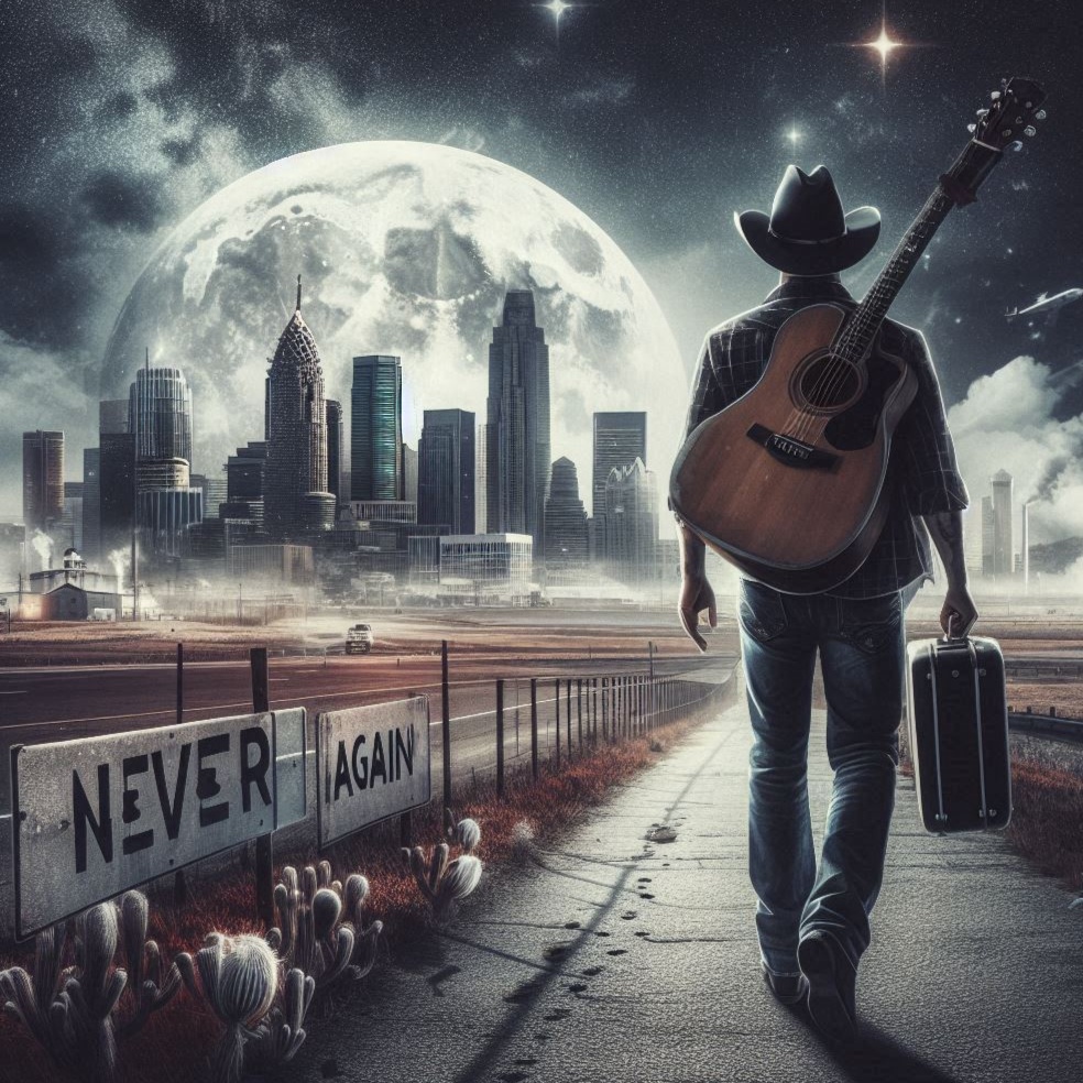 Male Vocal (Low, Conversational, Resigned), Tremolo and Delay-Driven Guitar Lines, Reverb-Saturated Textures, Lo-fi Ambience, Slow Tempo with Gradual Crescendo, Deep Bass Presence, Sparse Drums, Emotional Distance with Glimmers of Hope, Ideal for storytelling through sound — like walking home at night with every step echoing memory, regret, and love