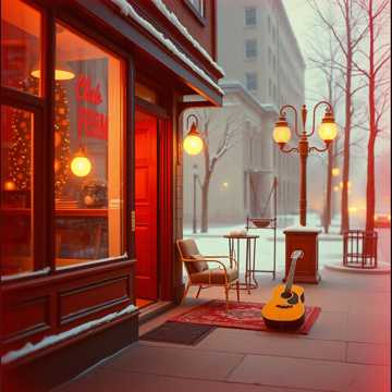 Warm slow jazz trio with electric guitar leading, upright bass, and soft brushed drums, Male vocals sit intimate and close, like a small club on Christmas Eve, Guitar plays tender chord-melody fills between phrases; chorus opens slightly with wider chords and subtle background oohs, Overall arc stays gentle and cozy, ending on a lingering major 7th voicing