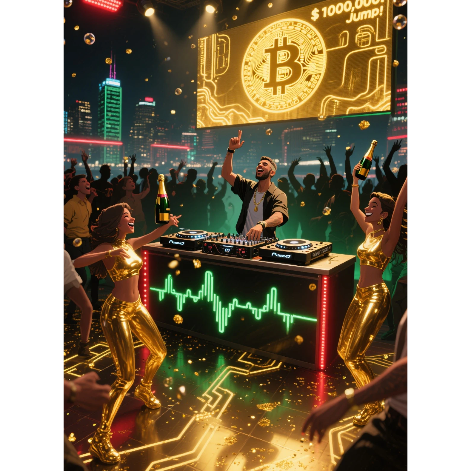 baile funk remix, funk carioca, hip-hop rap focus, bpm=140, tamborzão groove, short tight kick, separate sub bass (mono under 120hz), punchy club master, agogo and tamborim layers (med→high density), trap hi-hat rolls (tasteful), funk150 micro-fills (sparingly), paradinha 1-bar stop before hooks, siren stabs and whistle fills (frequent accents), vocal chops “100万ドル”>“jump!”>“yeah”, japanese male rapper confident, jp crowd chants + pt ad-libs 8:2, call and response hooks, festival/club hype, catchy repetitive hook, hands-up moments, intro 16 / verse heavy / pre-chorus lift / double hook drops, bridge half-time→snap back, celebratory luxurious vibe