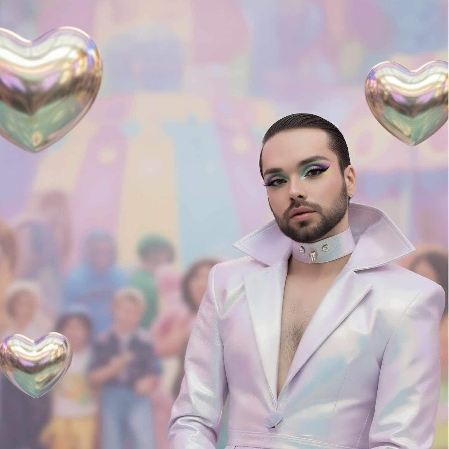 A horror-drenched hyperpop confessional—Verse 1 opens eerie and suspenseful with droning synths, heartbeat kicks, distant sirens, and whispered vocals like a slasher film monologue, Verse 2 turns aggressive: glitched-out percussion, industrial bass, distorted vocal layers, and looping phrases (‘decapitate my head’) hit like a manic spiral, Verse 3 slips into queasy sensuality—warped synth moans, slowed trap hats, and reverb-heavy whispers clash with violent imagery, Verse 4 is combative and theatrical—gun cock FX, harsh bass stabs, and glitched vocal bursts collide with electroclash grit, Verse 5 closes in unhinged rage: blown-out drums, crowd scream FX, chaotic distortion, and deadpan threats over a siren-laced, collapsing beat, Queer, manic, violent, poetic—obsession never sounded so personal