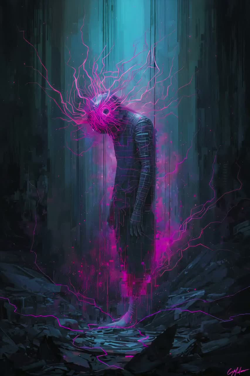 Mood: Unsettling, Gripping, Madness, Genre: Glitchcore instrumental that sounds like a musical emotion of a mobile hotspot with a broken, corrupt, and in constant torment of a consciousness, Make this instrumental to also fit to the K word in the title; Kinetic; motion, energy, and force, Aggressive modulation: Insert heavy use of filters, pitch-shifting, and other effects that make sounds feel like they are constantly in motion