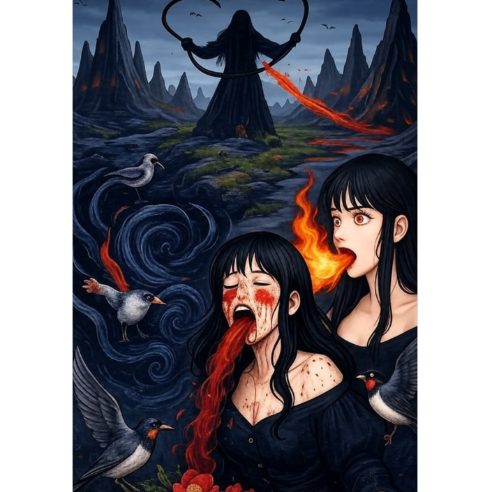 J-Pop, upbeat rock pop, female vocals, husky shout, 16-beat, energetic, soulful vibrato, guitar riffs, dramatic synth, orchestral, apocalyptic, mysterious, choir, echo, BPM 135