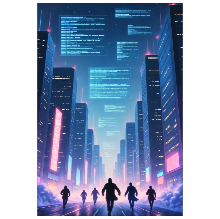 J-techno, synthwave, electronic hooks, robot vocals, uptempo drum beats, cyberpunk vibe, minimal lyrics with commands, bass riffs, synth arps, urban sound, masterpiece, lofi hip hop