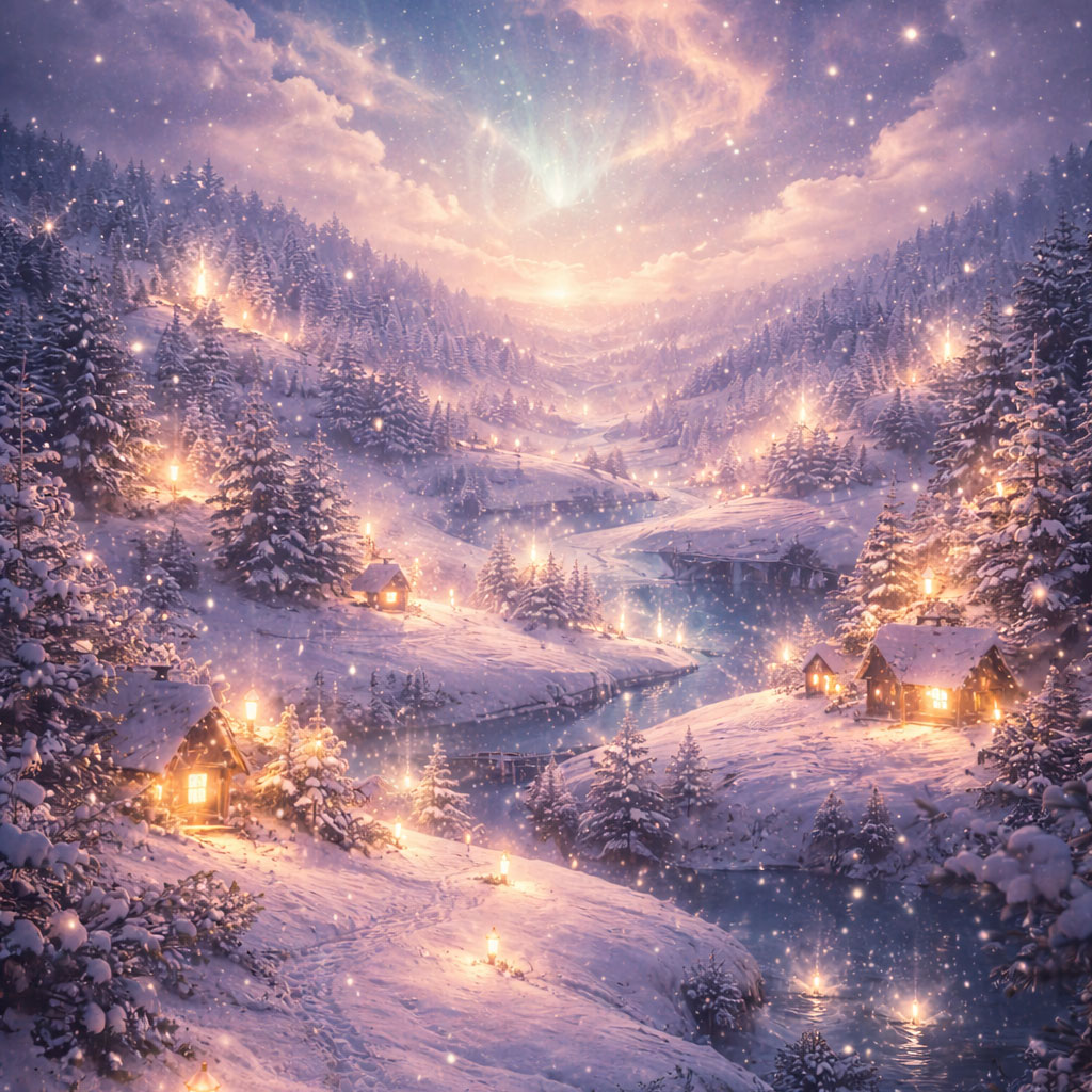 lofi art hypnagogic r&b, j-pop, ethereal pop, holiday, soft winter dream atmosphere, glowing window light, music box and celesta tones, airy synth pads, gentle pulsing bass, slow floating rhythm, warm harmonic layers, drifting melodic fragments, serene joy, childlike wonder without innocence, peaceful dream entry, light carried through sleep, instrumental