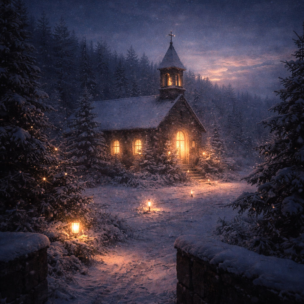lofi, medieval christmas folk, uplifting gospel alternative, dreampop atmosphere layer, lofi texture layer, holiday, pre-dawn christmas vigil atmosphere, distant chapel ambience, low chant-inspired pads, steady heartbeat-like pulse, restrained percussion, warm organ and drone tones, slow patient build, reverent calm, endurance through stillness, faith held through the night, quiet hope before morning, instrumental
