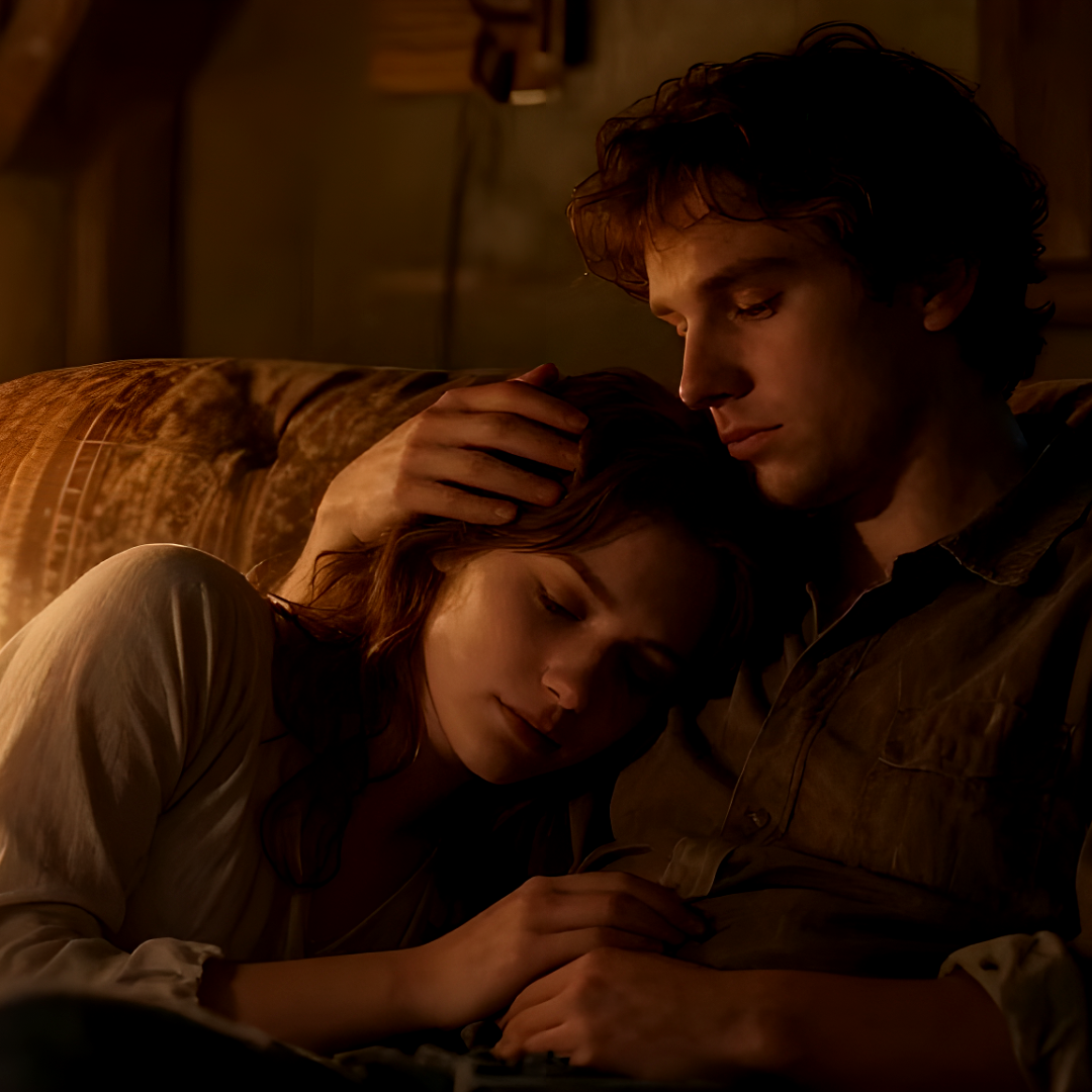folk, Warm porch-front folk-country duet, Fingerpicked acoustic guitar with soft slides, brushed snare and upright bass, Soulful female lead opens tender and clear; hoarse male vocal answers with rough-edged warmth, Choruses bloom with tight two-part harmonies, subtle organ pad, and a gentle rise in tempo and strum intensity, Last chorus pulls instruments back for an intimate, almost a cappella tag, male vocals, country, soulful, smooth