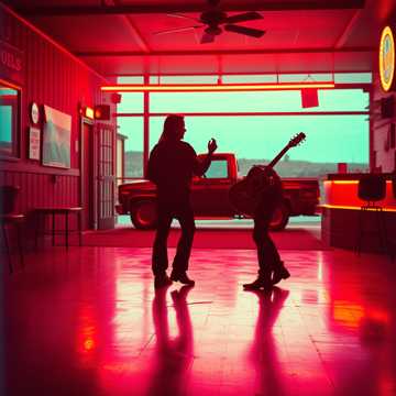 Weathered country frontman energy, Baritone drawl, Arena polish faded, Honky-tonk grit, Road-worn denim, Stadium lights memory, Pedal steel shimmer, Telecaster bite, Midtempo shuffle, Heartland hooks, Dusty humor, Self-aware bravado, Blue-collar swagger, Sunday morning remorse, Friday night volume, Chorus aimed at crowds, Verse aimed at bars, Familiar radio comfort, Rough edges preserved