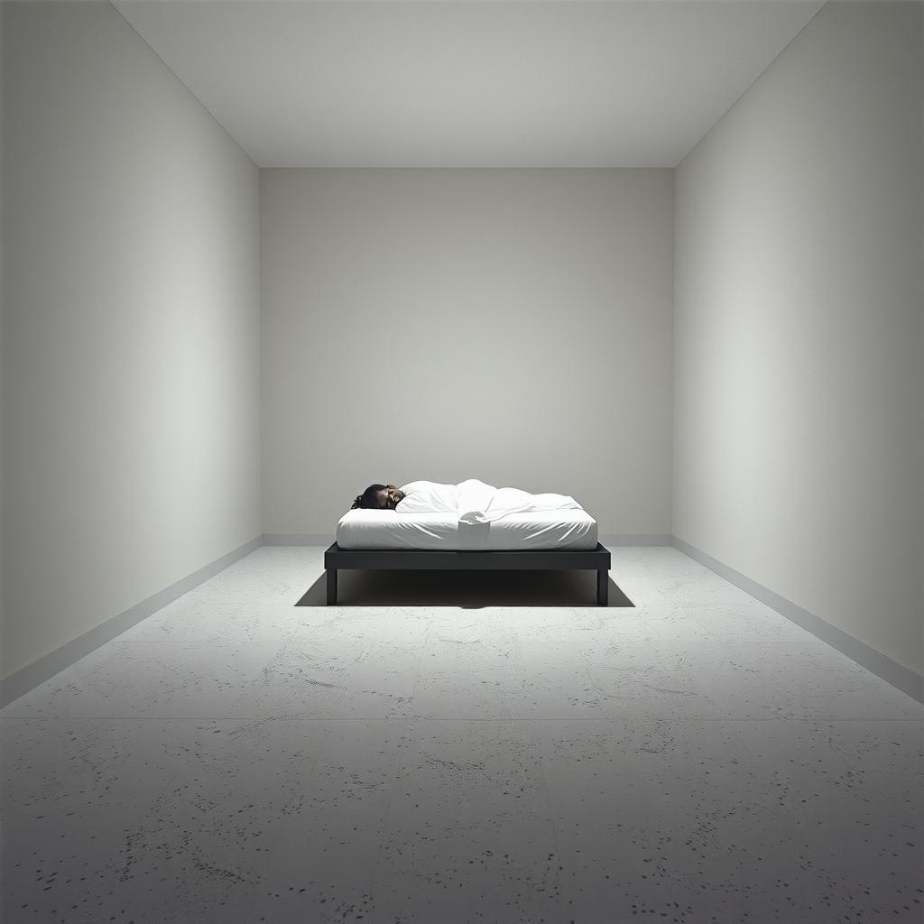 A very slow, oppressive Drone-Doom style, Massive, down-tuned electric guitars creating a wall of feedback, No clear melody, only dissonant chords that never resolve, The atmosphere is thick with "white noise" to represent the mites on the walls, Vocals are agonizingly slow, echoing from a distance, with a haunting, ghostly quality, It feels like being buried alive in a liminal space, Dark Drone-Doom, Oppressive, Down-tuned Electric Guitars, Feedback, Dissonant Locrian Chords, White Noise, Muffled Echoing Vocals, Ghostly, Burial Atmosphere, Slow Motion, 40 BPM, Monolithic