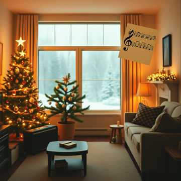 Upbeat festive Christmas instrumental with a warm, joyful, classic holiday atmosphere, Key: C major, Tempo: 120 BPM, bright mid-tempo 4/4 groove with a gentle swing feel, Lush orchestral pop arrangement led by cheerful piano and sleigh bells, supported by light jingle bells, warm upright bass, and a tight, buoyant drum kit with soft snare and brushes, String section provides sweeping, cozy harmonies and melodic lifts, while brass accents (trumpets and trombones) add celebratory sparkle in choruses, Subtle woodwinds (clarinet, flute) add playful holiday color, Melodies are uplifting, hummable, and family-friendly, evoking cozy living rooms, glowing Christmas trees, snowfall outside, and shared laughter, Overall tone is happy, nostalgic, and welcoming — perfect for sing-along moments, holiday gatherings, and end-of-year warmth, balancing classic Christmas charm with modern polish