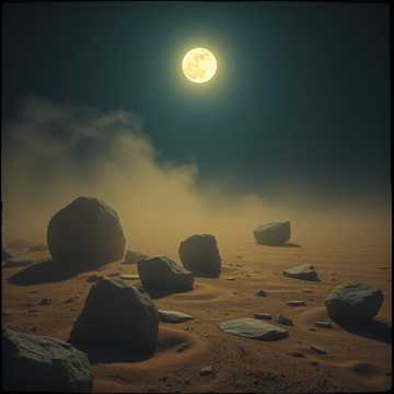 Psychedelic desert-pop with warped tropical elements, Mid-high tenor male vocals with breathy intimacy in verses, transitioning to dreamy falsetto in choruses, Complex layered vocal harmonies, Glass-like percussion and liquid dripping sounds mixed with tribal drums that speed up and slow down unexpectedly, Heat-wave distorted synths creating wavering textures, Melting wobbly bass, Off-kilter polyrhythms, Shifting stereo panning mimicking mirages, Minor chord progressions with modal shifts, Warping flute sounds, Lush tropical warmth with unsettling psychedelic elements